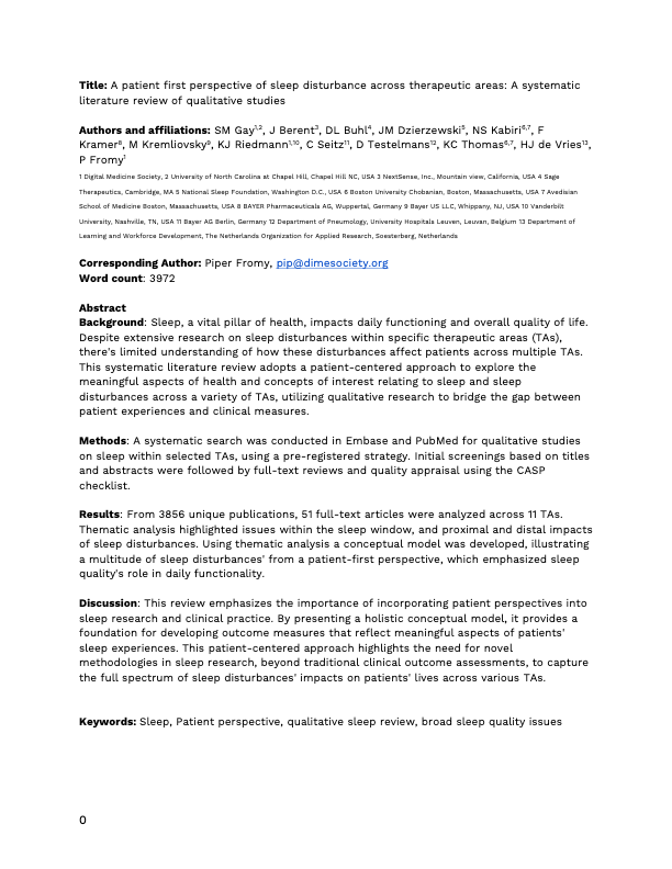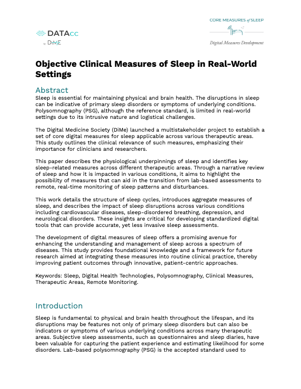 Constructed from key elements of sleep measurement for researchers, clinicians, digital health technology (DHT) developers, and academic research scientists, it provides you with terminologies and ontologies, and explains the core digital parameters at the algorithm output level to bring a more structured approach to adopting sleep measurement and facilitate fluid comparison between studies.
