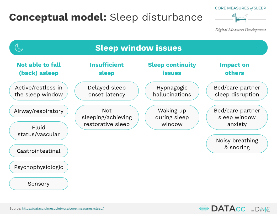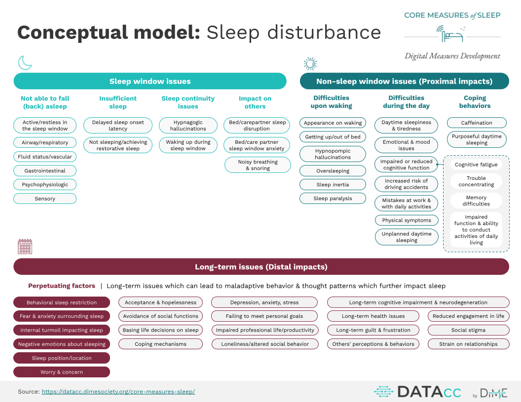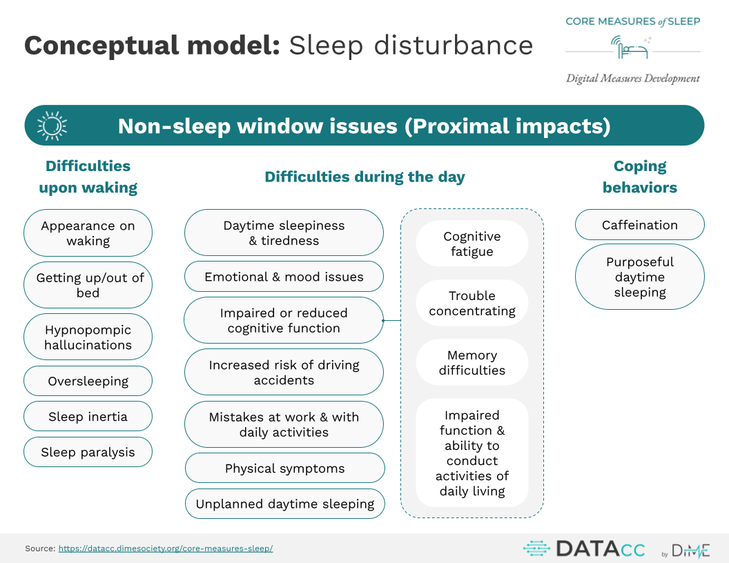Use this conceptual model and corresponding graphics for sleep disturbance across multiple therapeutic areas in briefing books, regulatory documents, and white papers.