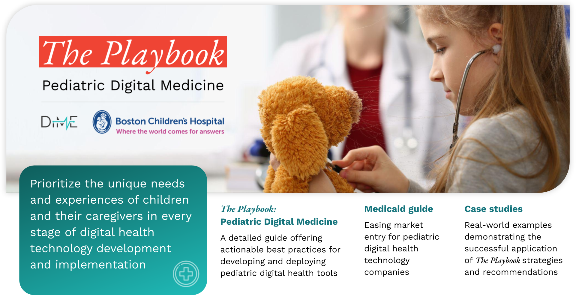 The Playbook is designed as a practical, tactical resource that will support pediatricians, pediatric hospitals, developers, and the patients our industry exists to care for starting today. It includes:
