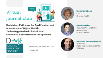DiMe Journal Club: Regulatory Pathways for Qualification and Acceptance of Digital Health Technology-Derived Clinical Trial Endpoints: Considerations for Sponsors
